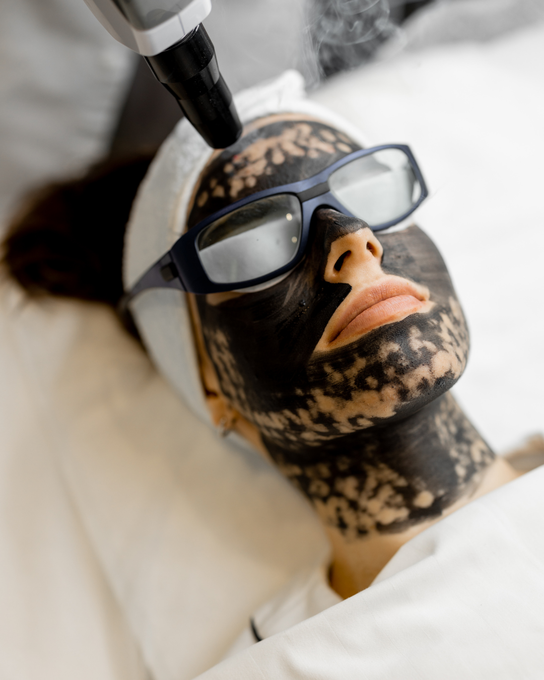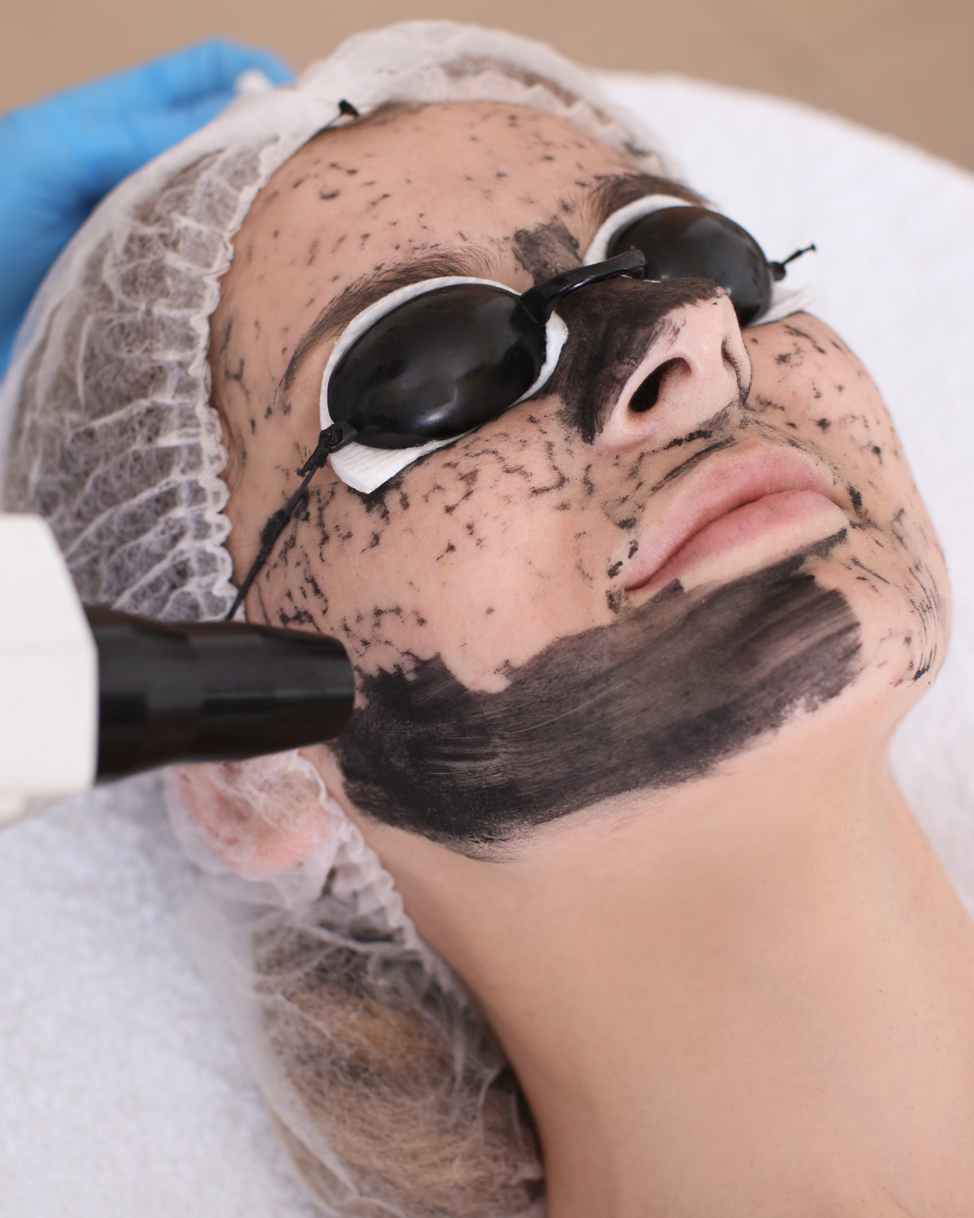 This step is critical — without charcoal, the laser would not achieve the same pore-clearing or exfoliating effect.
